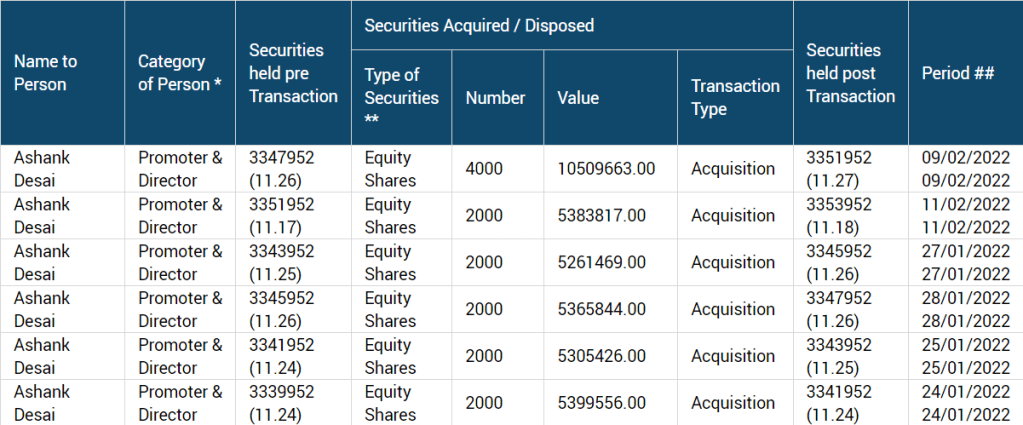 Ashank Desai, promoter of Mastek, has been buying Mastek in the market from 24/Jan to 11/Feb. Ashank paid a high price.
