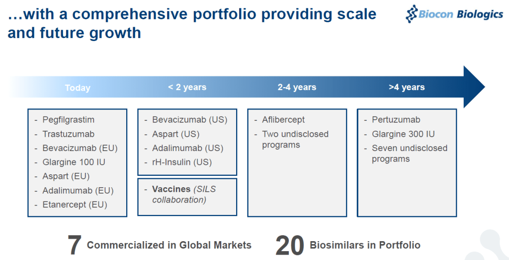 Biocon Biologics, a subsidiary of Biocon, develops high-quality affordable biosimilars.